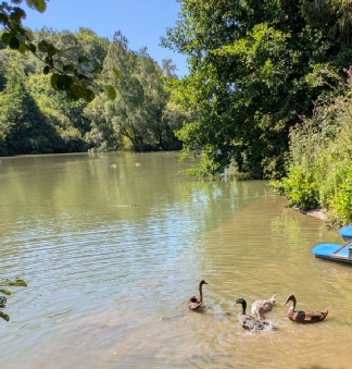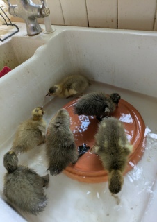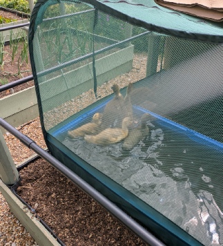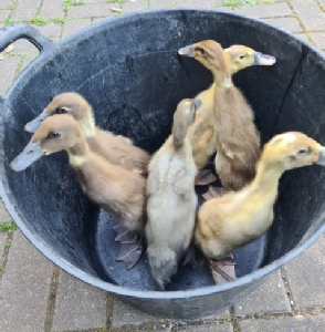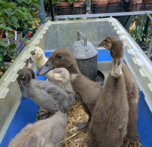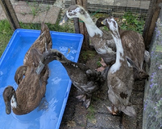Eventually the ducklings decided which were girls by quacking (or not) and these two soon joined the older three. We kept the four drakes for another ten days just in case anyone else decided to quack (which they didn’t) so made arrangements with a friend on the other side of Petersfield to release the boys in a lake used for carp rearing. They seemed quite happy with that arrangement!